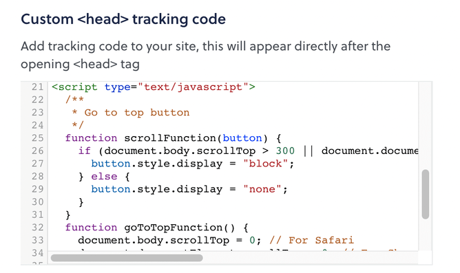 We're making use of the jQuery library that is included in your Rocketspark website by using the Document Ready Function ($()). This means we're adding the functionality to the button and page. Again you need to paste this into the text box "Custom <head> tracking code”, below the <style> (wrap it around <script type="text/javascript"> tags, when not pasting it into ones which are there already):